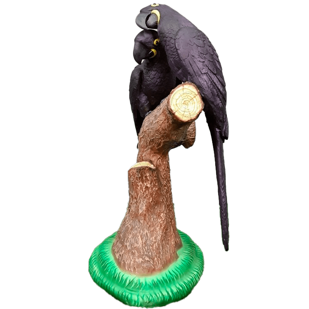 Location perroquet noir sur tronc en résine